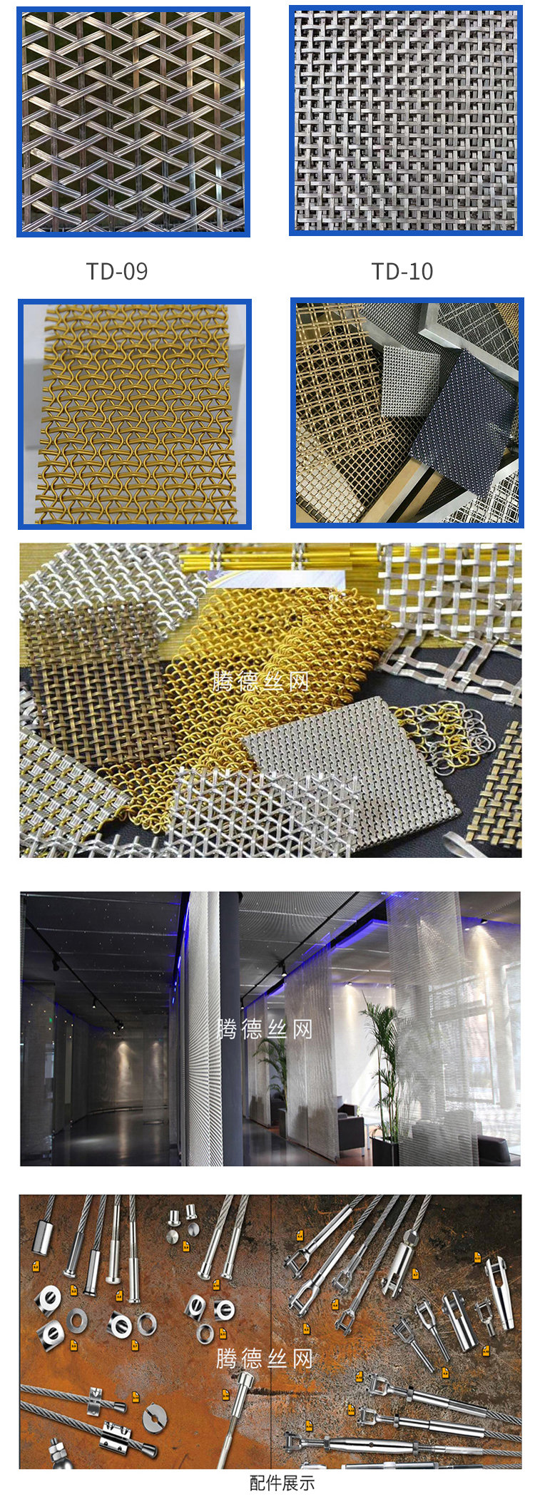 因其具有金属丝和金属线条特有的柔韧性和光泽度被广泛应用于博物馆、展览厅、文化中心、体育场、歌剧院、高档名牌旗舰专卖店、星级酒店、咖啡厅、购物广场、别墅、写字办公楼等建筑物的立面、隔断、吊顶及高档内外装修。