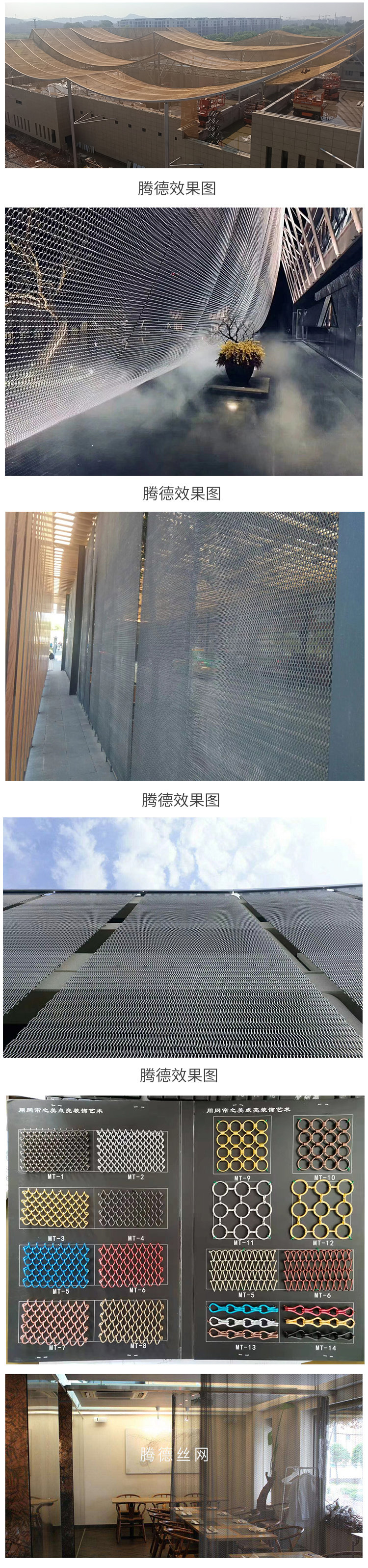 金属网帘由铝镁合金丝,铜丝,不锈钢丝等金属材料螺旋编织而成,网帘表面可以是金属本来的颜色,也可以处理成古铜,金色等其他金属色。可用于高级建筑的窗帘,豪华客厅的屏风装饰,星级宾馆、豪华舞厅、高级办公大楼内外装饰等,有灯光映照显现出金碧辉煌的效果。